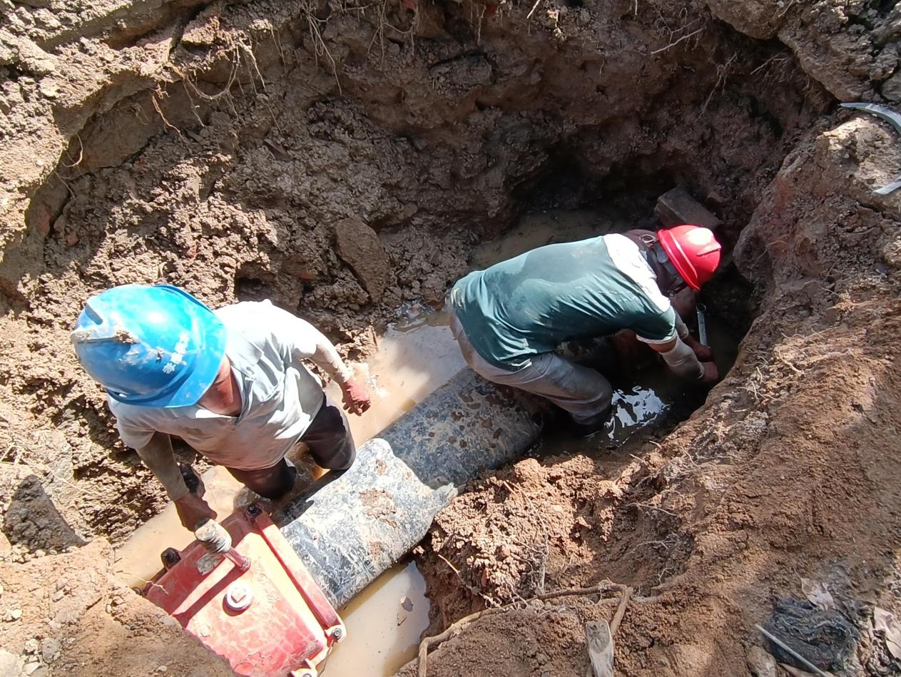 正值三伏天,天氣炎熱,氣溫高達40度。搶修人員絲毫不懼酷熱,他們在做好高溫防護后輪番上陣,有序推進搶修工作。經(jīng)過挖掘、清理,作業(yè)坑成型,破損的DN400管道露出水面。隨后,搶修工作緊鑼密鼓展開。經(jīng)過近8小時的奮戰(zhàn),于當天下午4點完成了搶修任務,從最大程度上減少了對附近居民及工商業(yè)用水造成的影響。