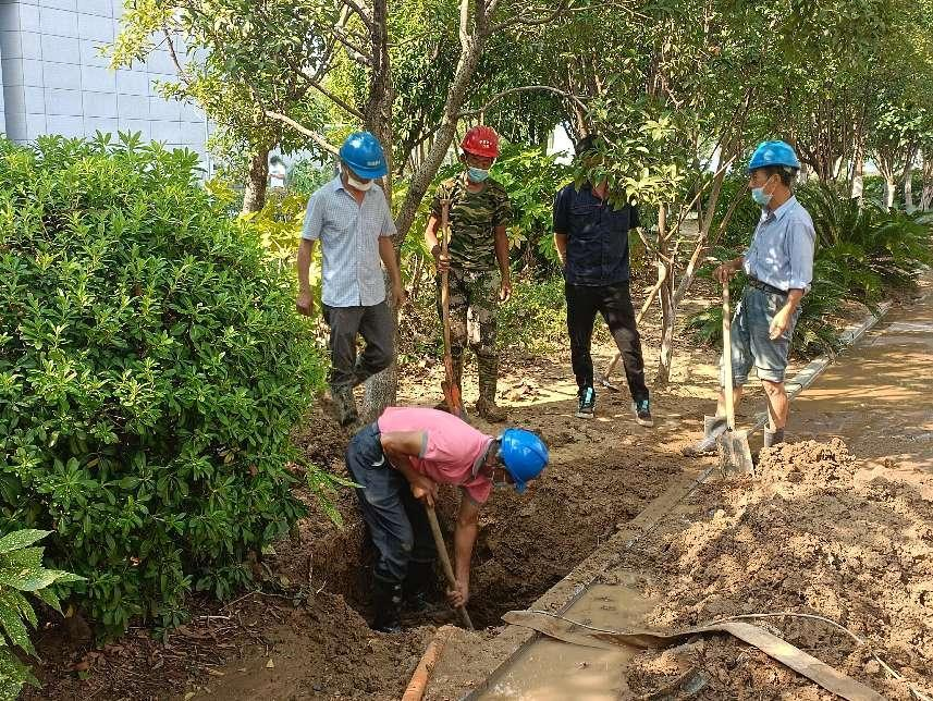 接到通知后,公司運(yùn)維部搶修人員迅速趕往現(xiàn)場進(jìn)行勘察,通過精準(zhǔn)定位鎖定了漏點(diǎn),并制定了搶修方案。快速挖開路面,經(jīng)排水、挖掘、清理后,搶修人員對此處破損的DN300供水管展開了搶修。他們采用“哈夫節(jié)”包接方式,將新舊管道接口成功連接。截至當(dāng)天下午3時,經(jīng)過7個小時持續(xù)不間斷奮戰(zhàn),漏水供水管道搶修工作結(jié)束,經(jīng)管壓調(diào)試后恢復(fù)正常供水。