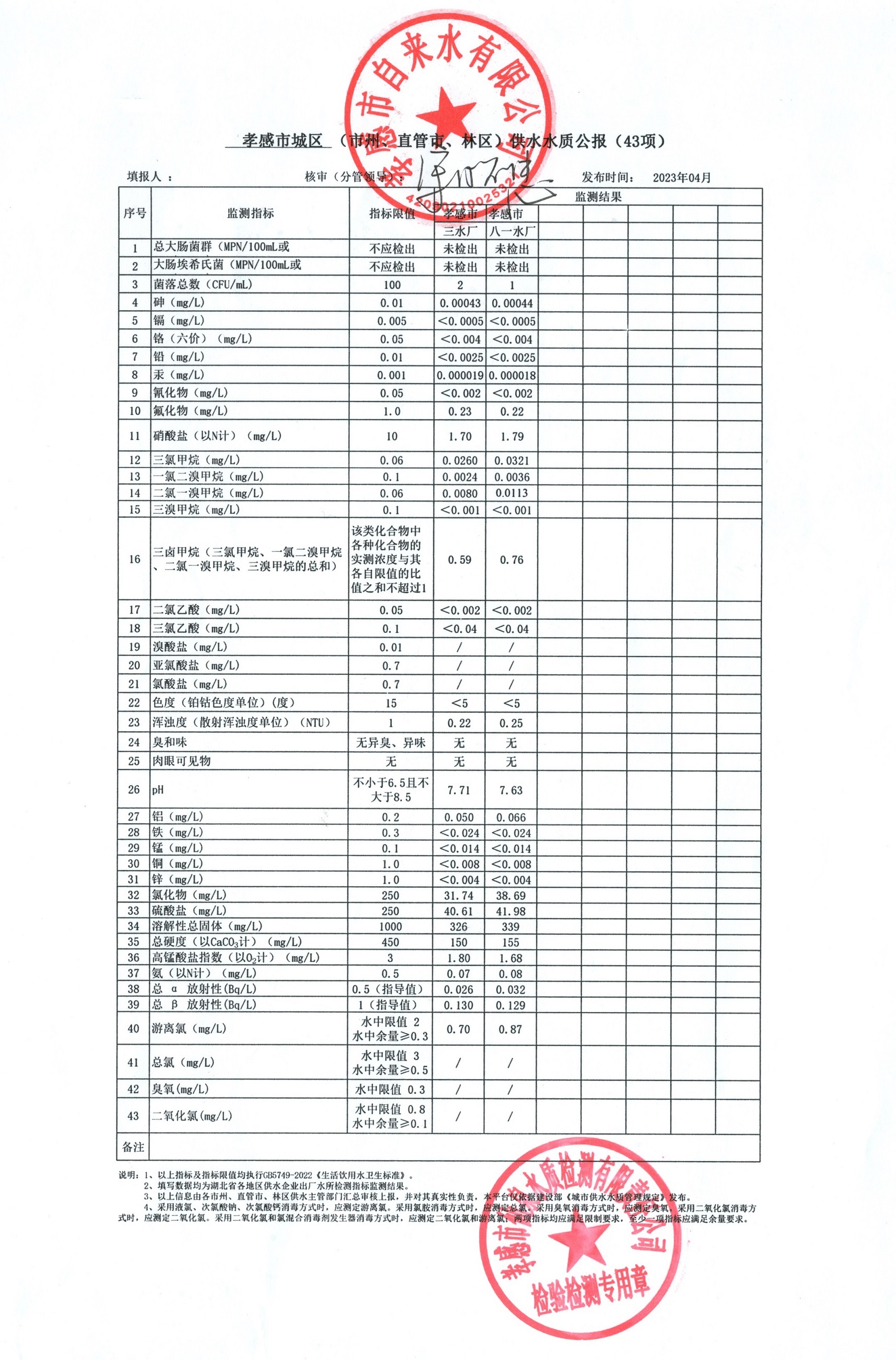 2023年4月水質(zhì)報(bào)告