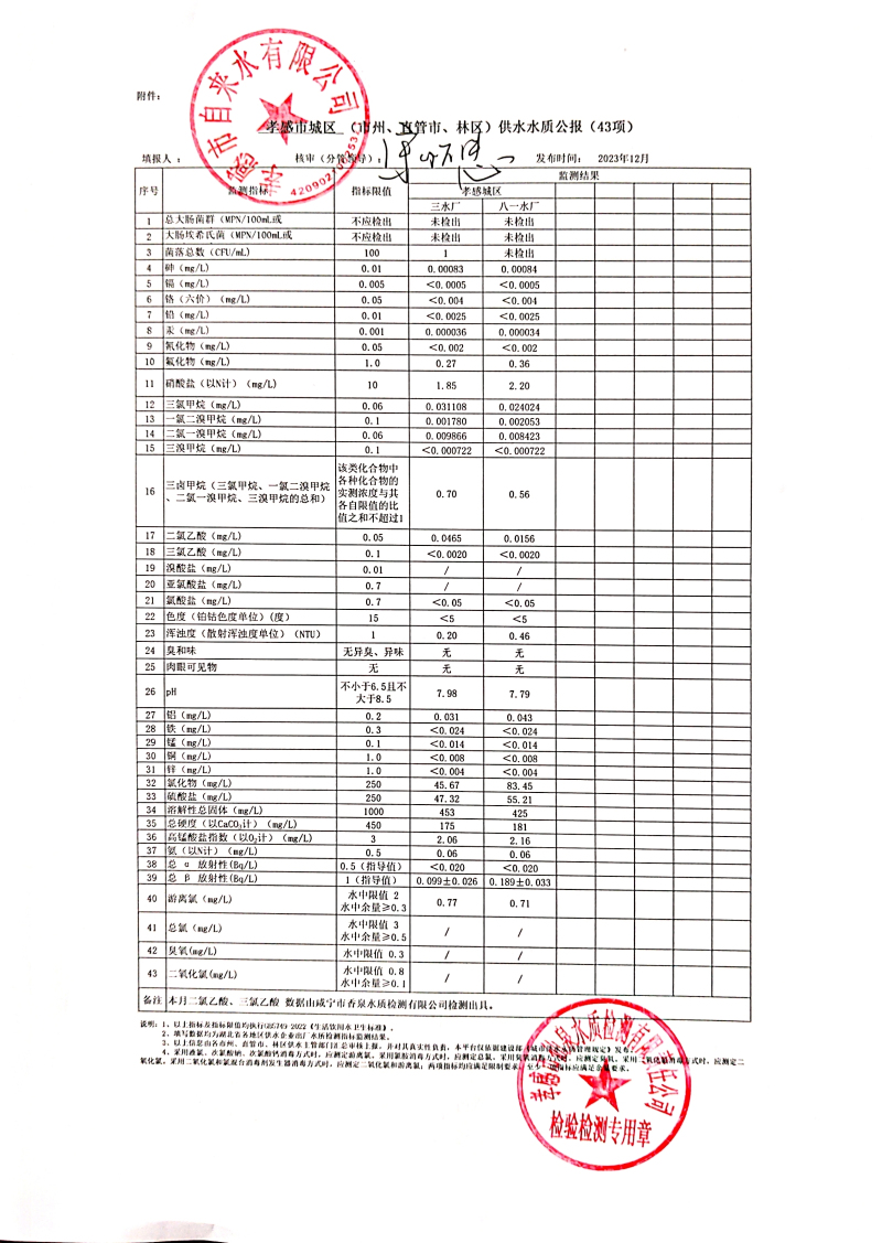 2023年12月水質(zhì)報(bào)告