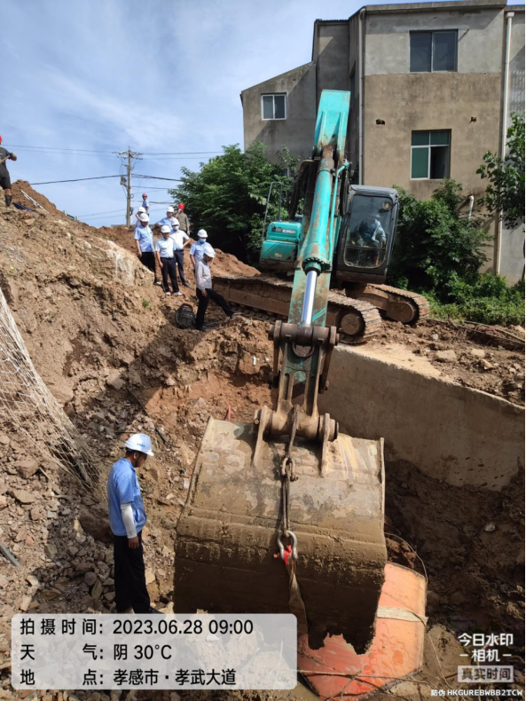 為確保供水主管碰接施工安全穩(wěn)妥推進,壓縮停水作業(yè)時間,將停水對城區(qū)高峰供水的影響降至最低,我公司多次組織技術信息部、工程管理部、運行維護部、應急安全部等部門到現(xiàn)場勘察會商方案。根據(jù)最終確定的分解施工方案,6月28日早上8點,孝武大道城南大道供水管道碰接工程正式開始施工。