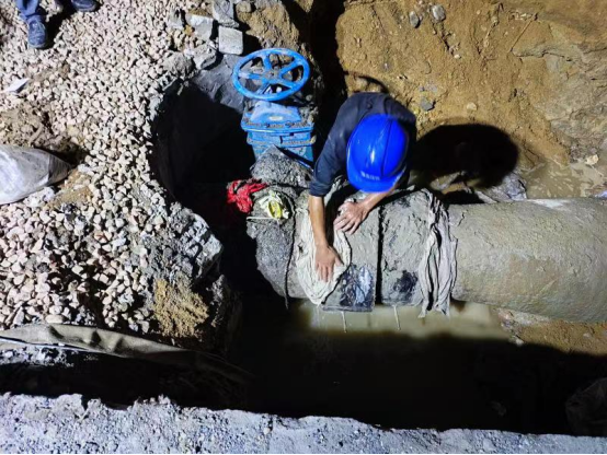 晚上22點(diǎn)30分,管網(wǎng)漏水點(diǎn)被成功修復(fù),保障沿線居民不間斷生活用水。