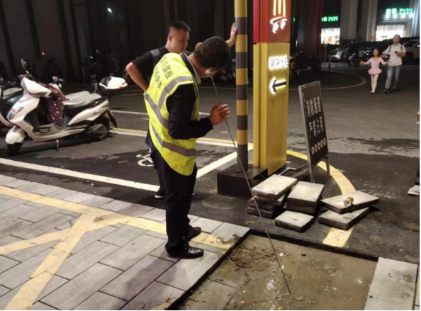 晚上7點30分,我公司探漏人員從計費水表開始,沿管線走向,對該小區(qū)進行仔細排查。經過兩個多小時的探測,發(fā)現是小區(qū)內主管網管身爆裂40公分,造成停水。隨后工作人員展開搶修工作,經過6個小時的緊張維修,3日凌晨3點30分完成搶修并恢復通水,進一步保障了居民用水安全,獲得群眾一致好評。