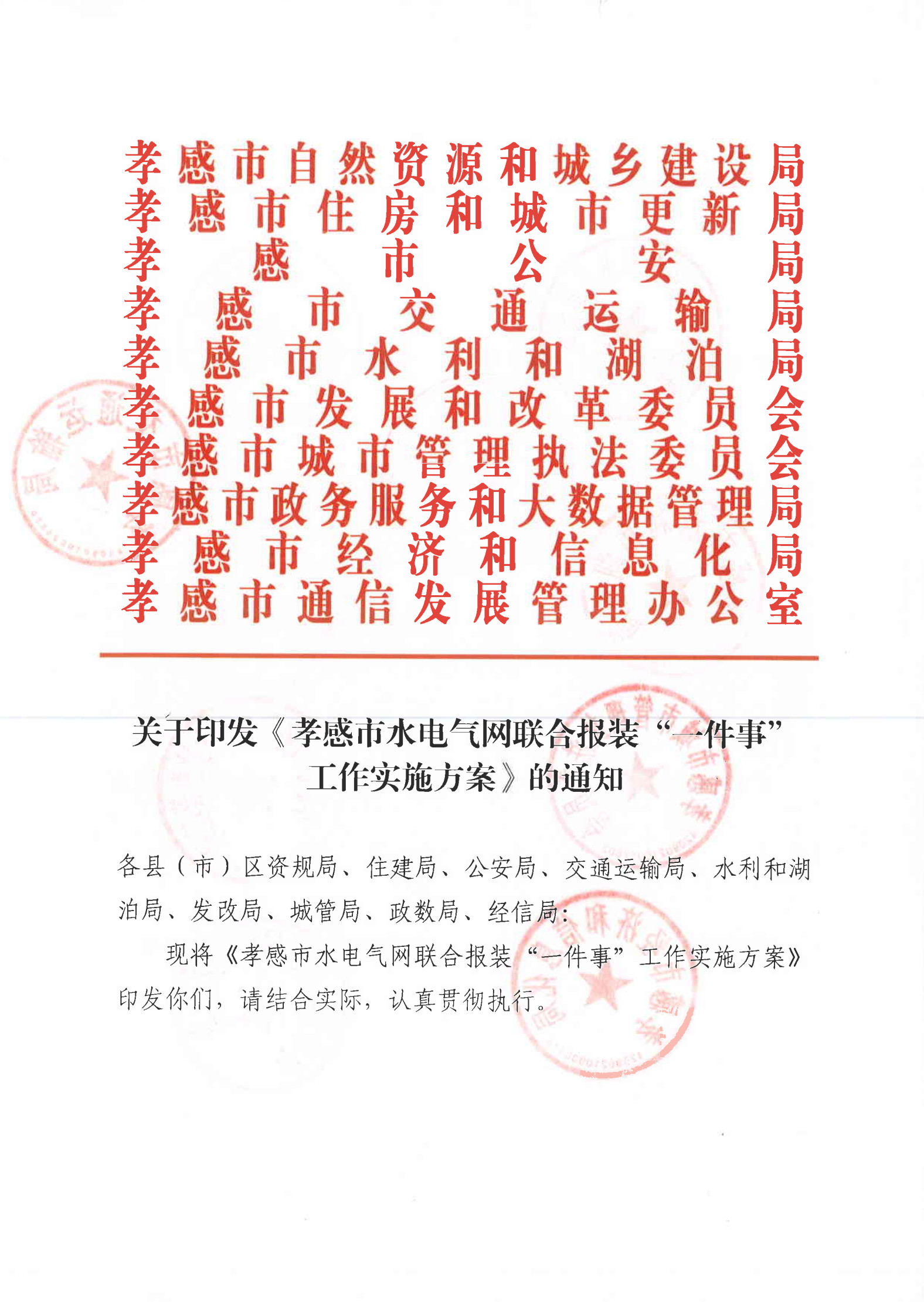 關(guān)于印發(fā)《孝感市水電氣網(wǎng)聯(lián)合報裝“一件事”工作實(shí)施方案》的通知