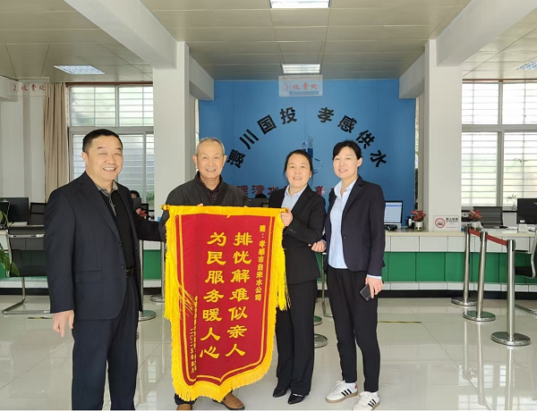 4月14日上午,槐蔭小區(qū)的余先生將一面繡有“排憂解難似親人 為民服務(wù)暖人心”的錦旗贈(zèng)予自來水公司,并對自來水公司員工的辛勤工作表示了衷心的感謝。