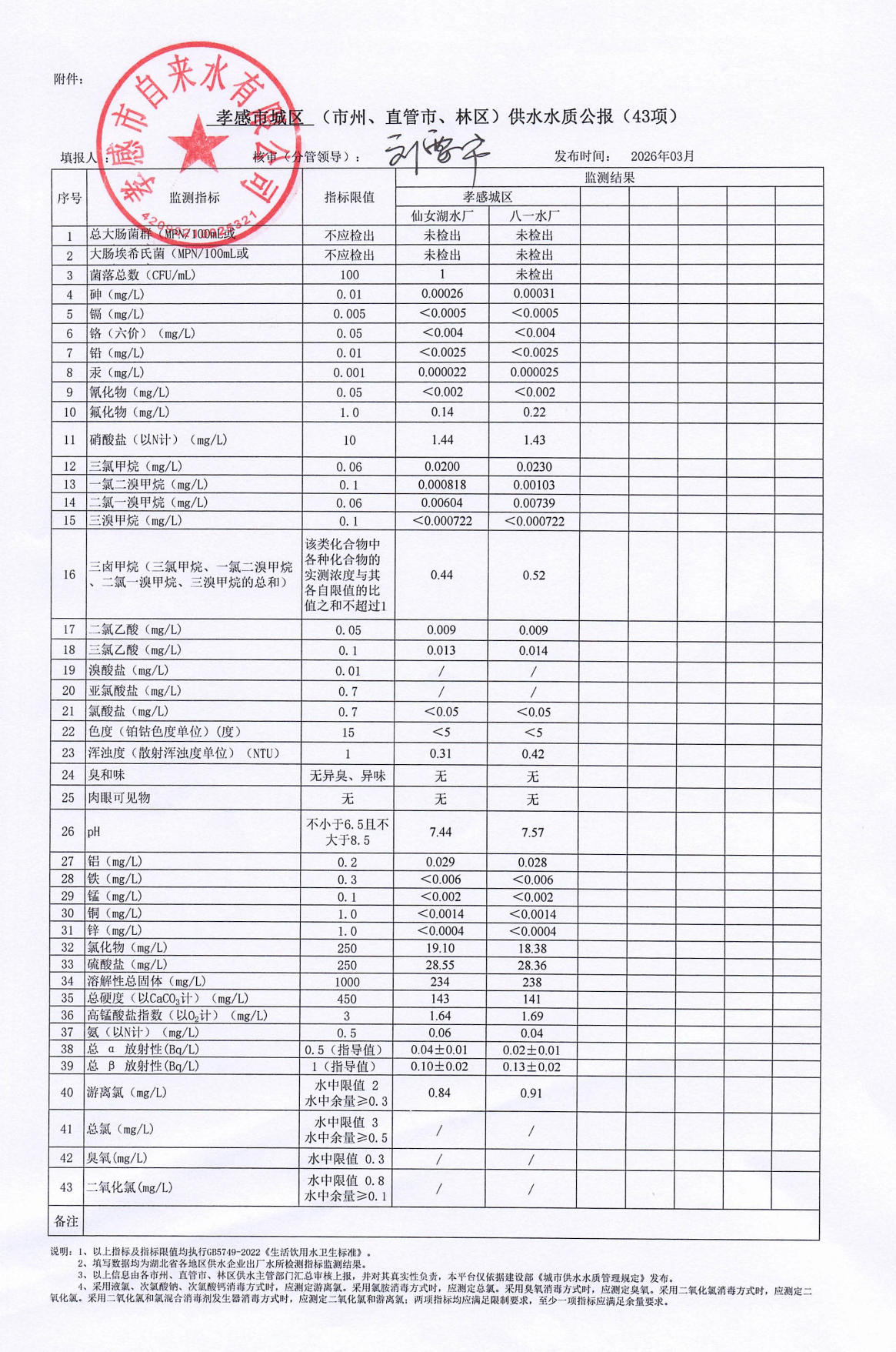 2026年3月水質(zhì)報告