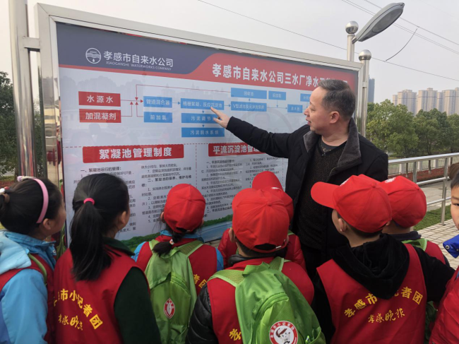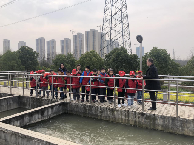 “我們城區(qū)的生活用水來(lái)自漢江,大家看看現(xiàn)在水池中水的顏色,我們接著往下參觀……”在公司三水廠工作人員的帶領(lǐng)和介紹下,小記者們看到了處理前的原水。由于他們大多是第一次參觀自來(lái)水廠,對(duì)每一步工序、每一處管道、每一種儀器都充滿好奇。他們有的在不停追問(wèn),仔細(xì)探究水處理過(guò)程中的每一點(diǎn)細(xì)微變化;有的認(rèn)真做著記錄,若有所思,與家長(zhǎng)和同學(xué)進(jìn)行探討。