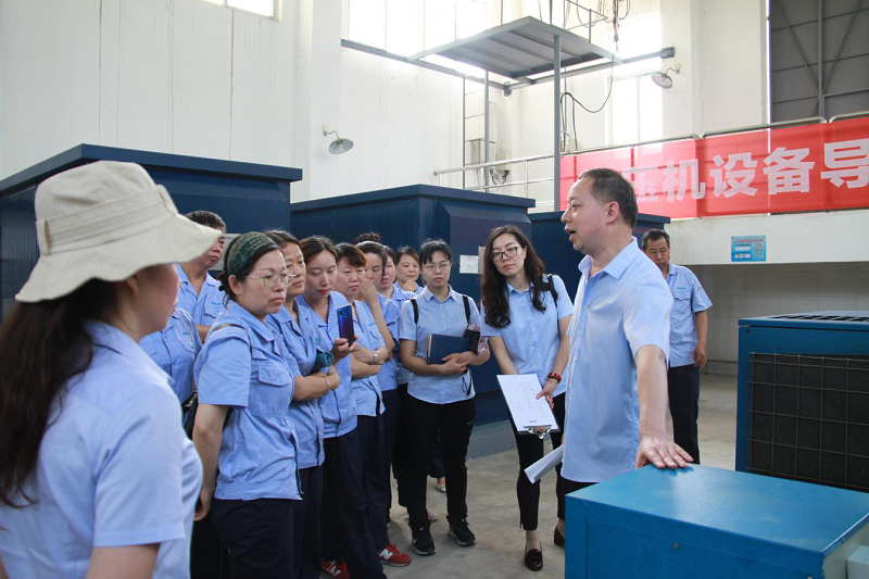 培訓過程中,丁廠長首先向大家介紹了三水廠的基本情況和水質(zhì)安全的重要性,隨后帶領大家來到凈化池。通過現(xiàn)場參觀,給水廠職工講解了凈化池的工作原理及基本工藝流程。理論知識授課完畢后,丁廠長還帶領大家來到車間,對各種設備設施進行了現(xiàn)場講解,并對空壓機設備導換、加藥泵設備導換進行了實地操練 。