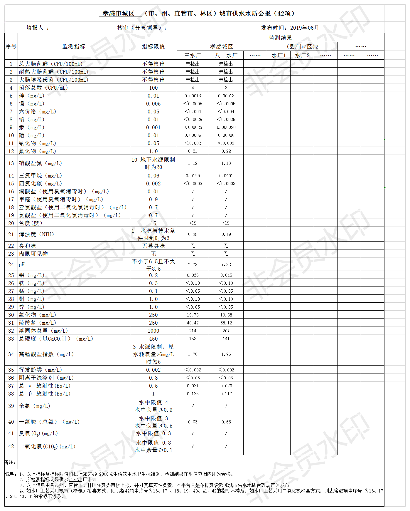 2019年6月水質(zhì)報告