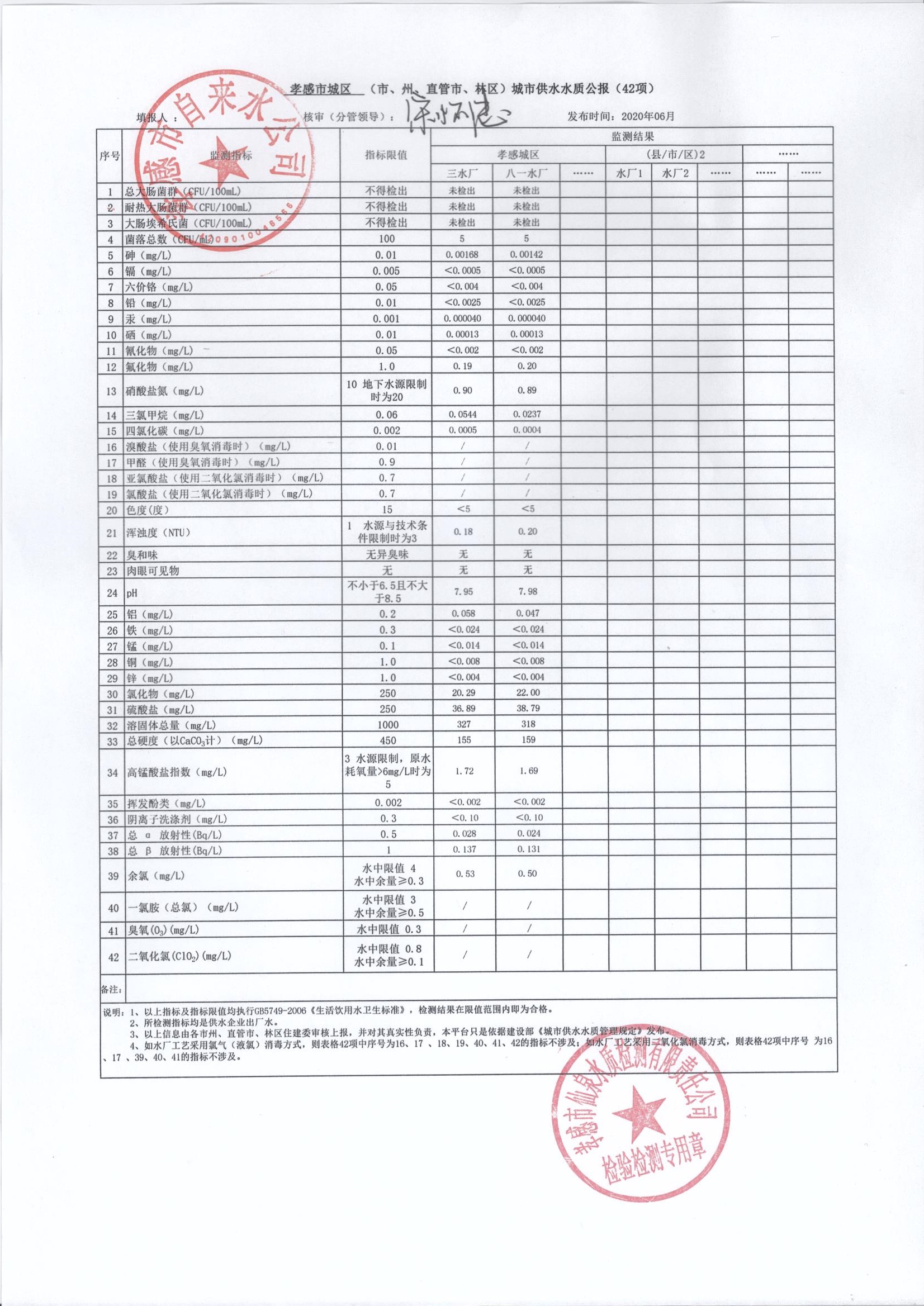 2020年6月水質(zhì)報(bào)告