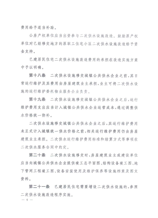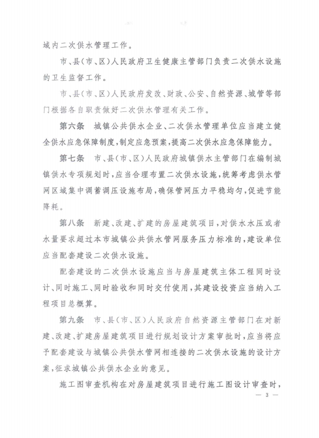 孝感市城鎮(zhèn)居民住宅二次供水管理辦法