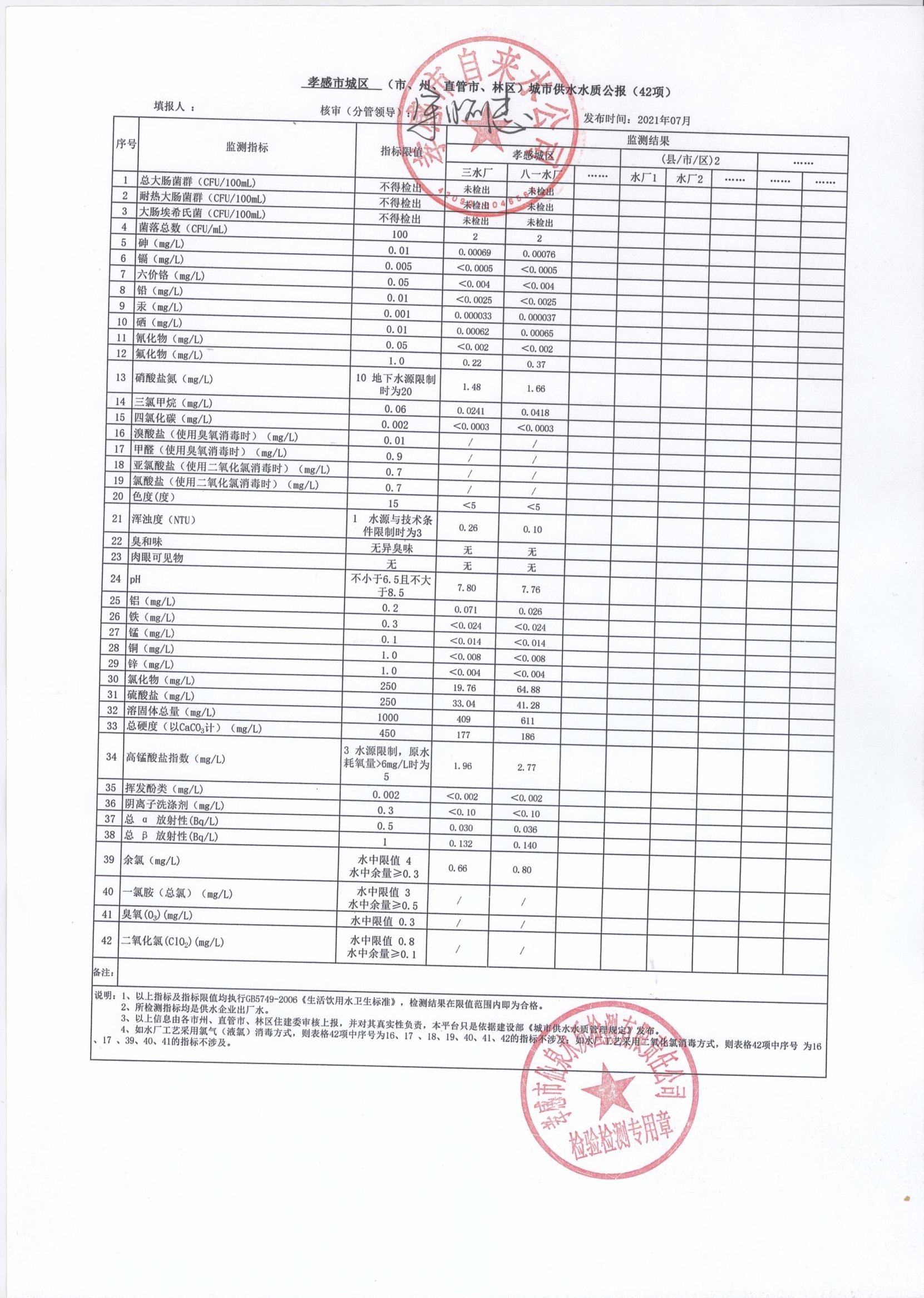 2021年7月水質(zhì)報告