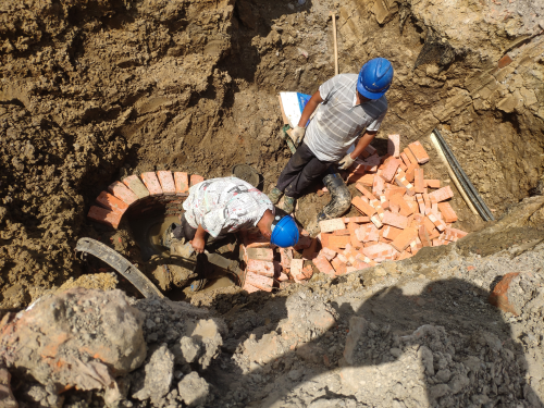 隨后我們來(lái)到了第二處:澴川路公安局前,由于市政工程導(dǎo)致此處水源口需要置換,前幾日將管道接好后,今天我們搶修工正在給該處總表閘閥修砌閘表井。