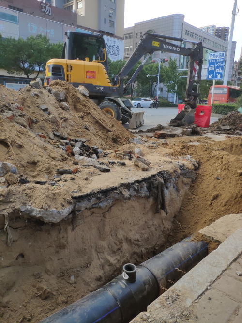 最后我們來(lái)到了槐蔭大道與北京路交接處,由于槐蔭大道全線施工改造,位于北京路交接處的供水管道需要向外遷移,現(xiàn)場(chǎng)挖掘機(jī),熱熔機(jī)一齊開(kāi)動(dòng),各部門通力合作,密切配合,各司其職,各負(fù)其責(zé),一節(jié)一節(jié)地推進(jìn),把工作做實(shí)做細(xì)。