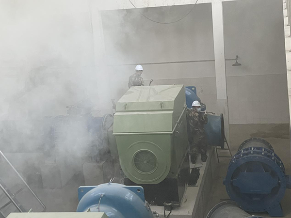 上午9點30分,21名民兵著訓練服在隊長王冠群的口令下整隊稍息,隨后跑步前往三水廠絮凝池,對水池進行防空襲前的偽裝防護。除此次預演之外,11月10日,公司應急搶險搶修專業(yè)隊在三水廠供水泵房還進行了空襲后設備受損的快速搶修演練。