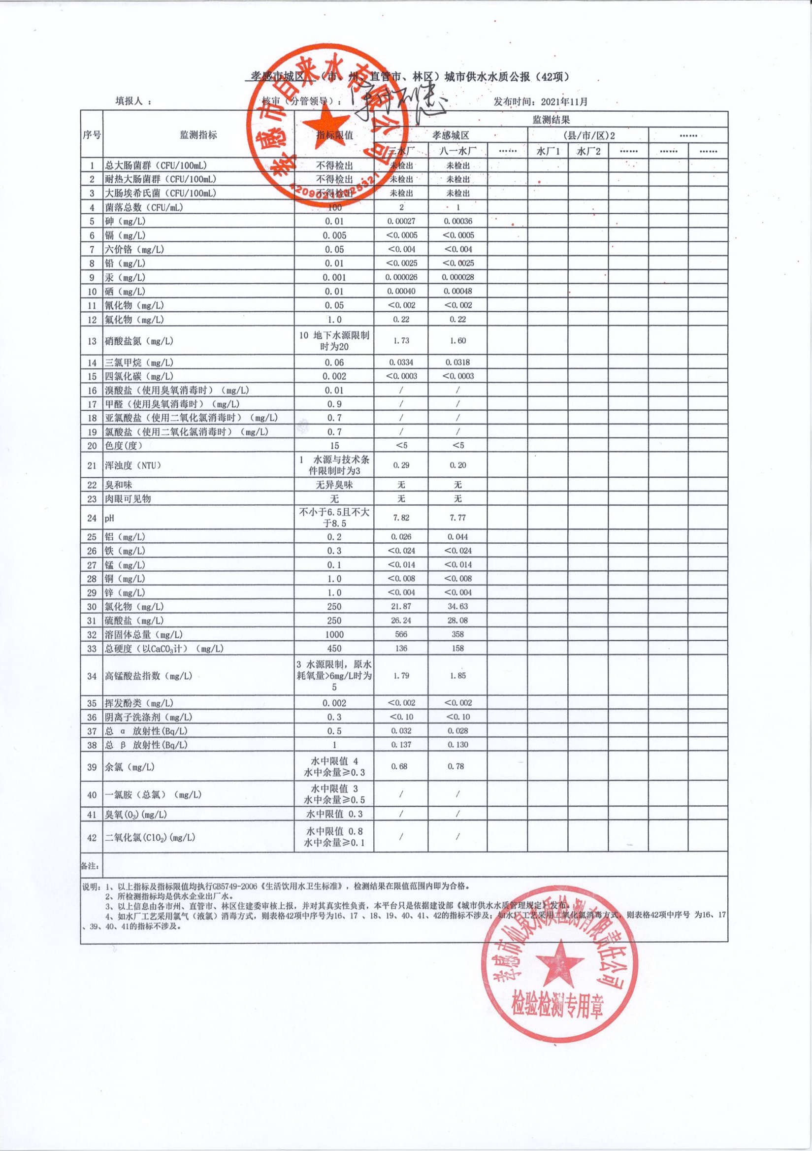 2021年11月水質(zhì)報告